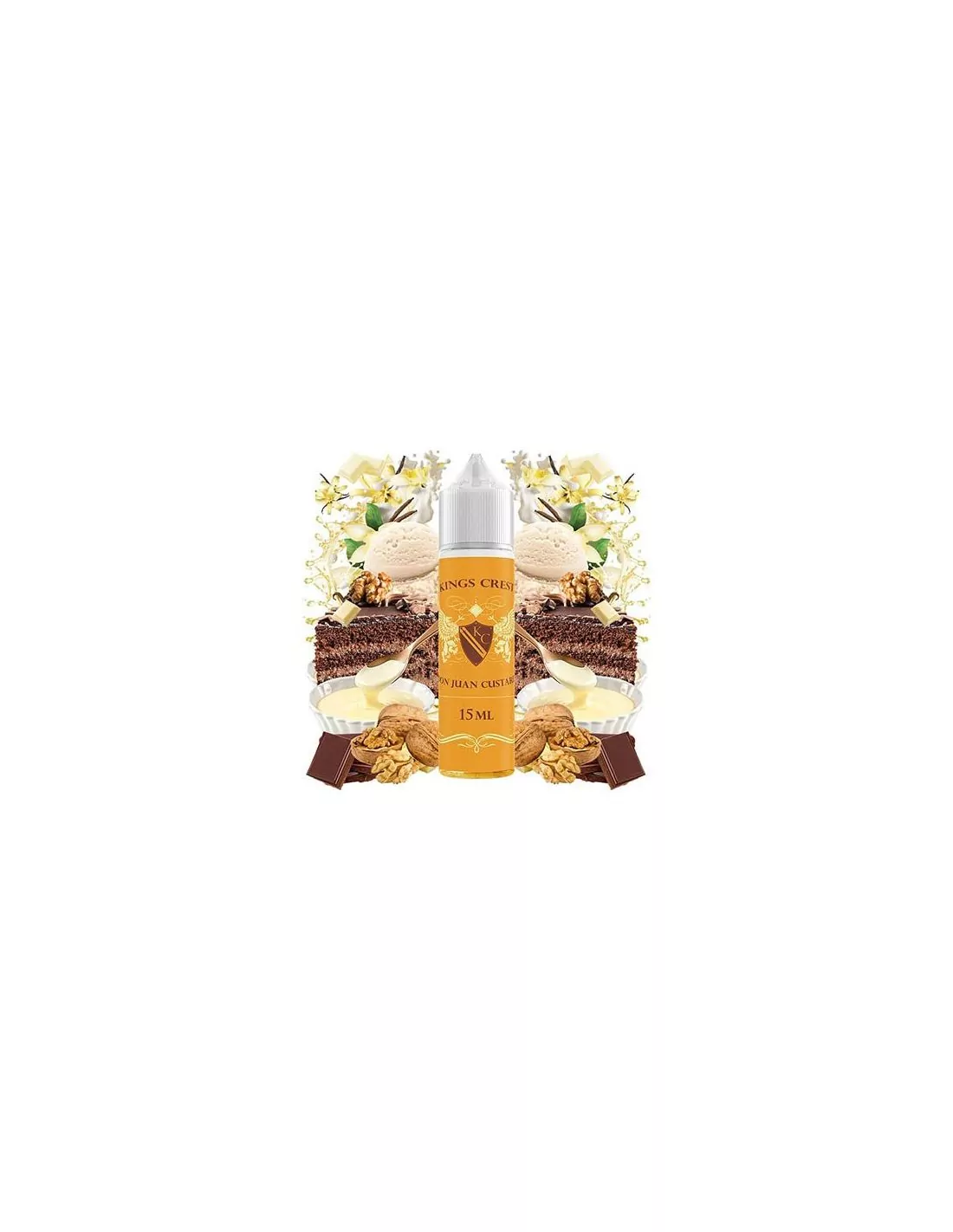 Aroma Don Juan Custard Kings Crest Longfill, sabor a tarta de chocolate, nuez pecana, crema batida y natilla, disponible en 30ml, 60ml y 120ml.