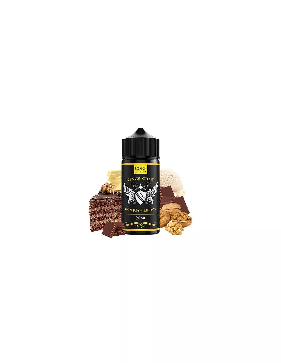 Aroma Longfill Don Juan Reserve - Kings Crest Core Edition 10ml sobre 30ml y 20ml sobre 120ml sabor tarta chocolate nuez pecán 100% PG sin nicotina.