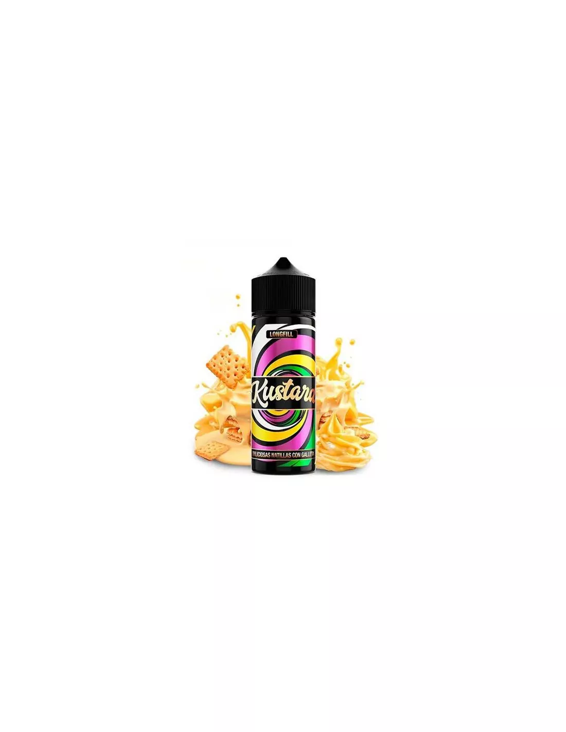 Aroma Longfill Kustard 30ml y 120ml, natillas de vainilla, caramelo y galleta. 100% PG sin nicotina, sabor cremoso y equilibrado para los amantes del postre.