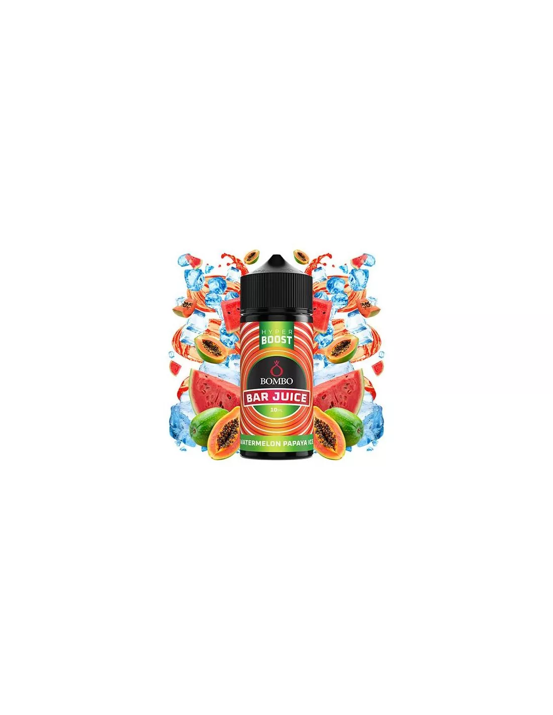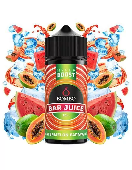 Aroma Longfill Watermelon Papaya Ice - Bombo Bar Juice Hyper Boost 10ml/120ml: sandía y papaya tropical con frescor equilibrado, disponible en Vapsense.