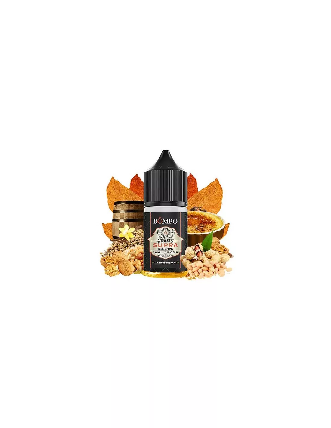 Nutty Supra Reserve de Bombo es la reinterpretación gourmet del premiado Supra Reserve, distinguido como Mejor Tabaquil en Vapexpo 2022. Este aroma longfill combina tabaco dulce, caramelo y notas tostadas con una cremosa fusión de frutos secos que aporta cuerpo, suavidad y complejidad aromática, ahora disponible en formatos 30ml, 60ml y 120ml.
