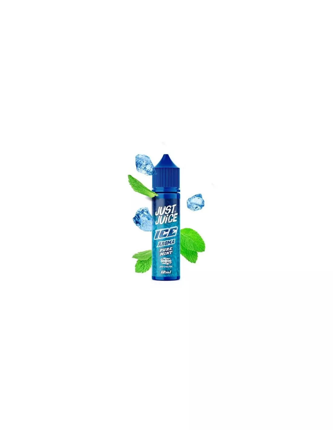 Aroma Pure Mint Just Juice Longfill, sabor a menta suave y hielo. Formatos 60ml y 120ml para mezcla personalizada y vapeo de calidad.