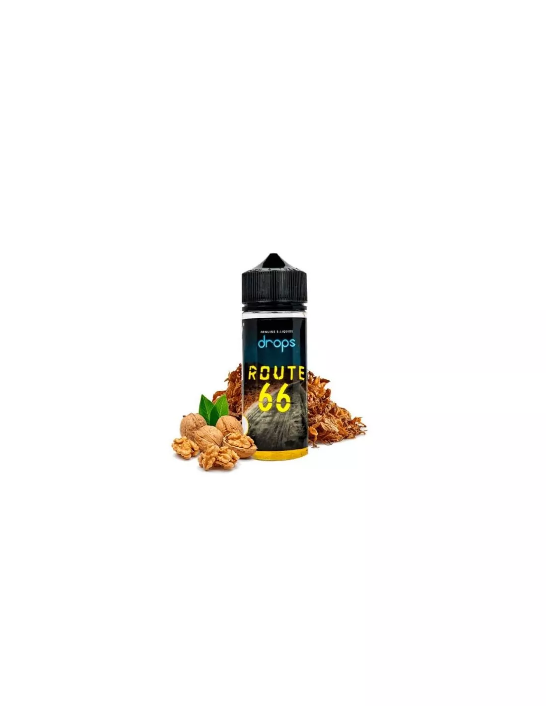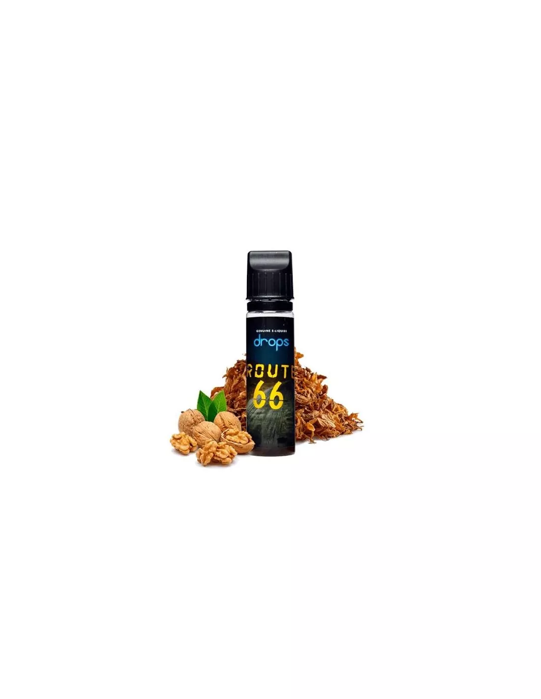Aroma Route 66 Drops Longfill, tabaco Virginia con nueces. Disponible en formatos 60ml (8ml aroma) y 120ml (16ml aroma) para mezcla personalizada.