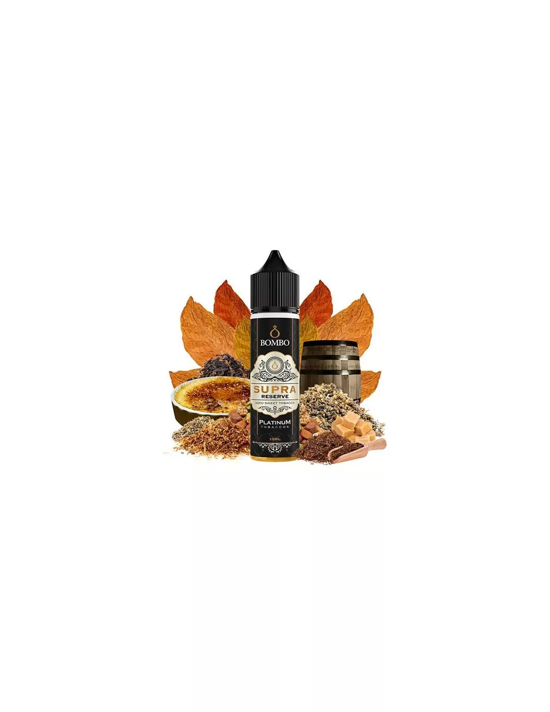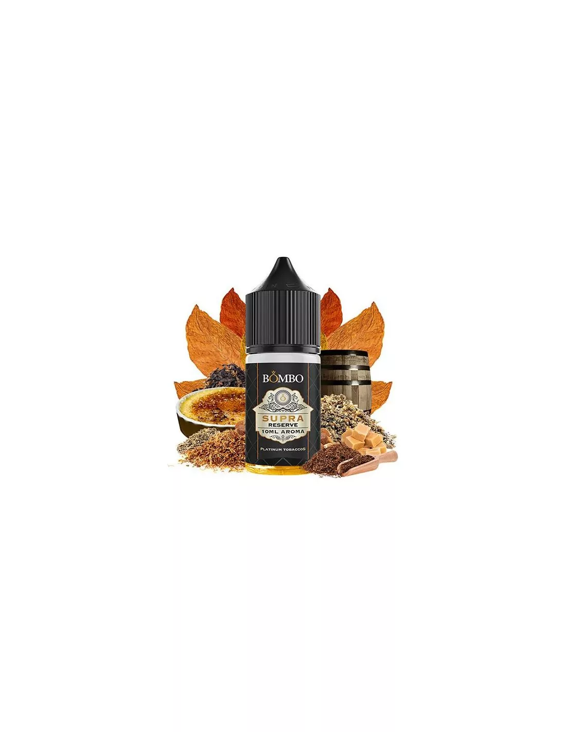 Aroma Supra Reserve Bombo Longfill, tabaco dulce, caramelo y tostado. Disponible en 30ml, 60ml y 120ml para mezcla personalizada.