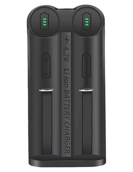 El MX2 de Maxicell es un cargador rápido y seguro para dos baterías Li-ion, compatible con formatos como 18650, 20700 y 21700. Funciona mediante entrada USB-C, lo que permite alimentarlo con cualquier adaptador estándar o powerbank, ideal para usuarios que buscan una solución práctica y fiable para el vapeo diario.