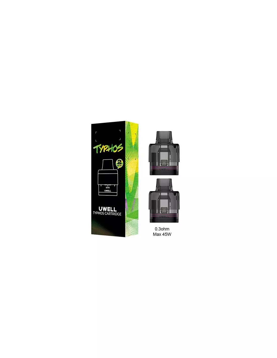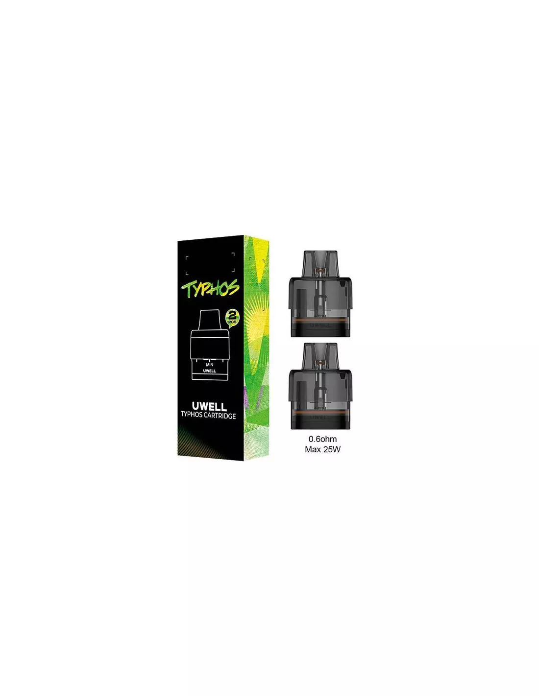 Cartucho Pod Typhos (2pcs) - Uwell con 2ml, resistencias Dual Mesh integradas en 0.3Ω, 0.6Ω y 0.8Ω. Tecnología CoreShield antifugas.