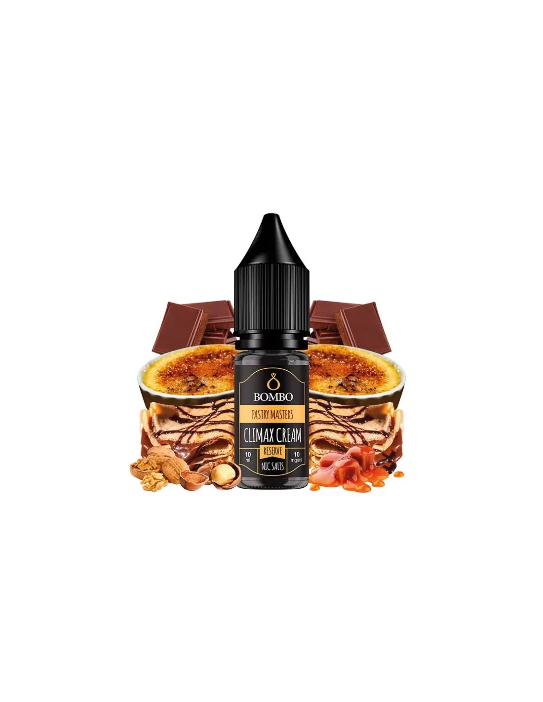 Climax Cream Nic Salts by Bombo 10ml – Crepe de crema catalana con chocolate, frutos secos y caramelo. Sales de nicotina 10/15/20mg. 50VG/50PG.