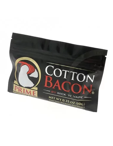 En cada paquete Cotton Bacon Prime (Wick ’N’ Vape) se incluyen 10 tiras. Llama la atención el increíble sabor. Tiene el material de algodón más limpio y lo han perfeccionado manteniendo las mismas excelentes características que los anteriores productos de algodón Cotton Bacon, pero tiene fibras más gruesas que aumentan la tasa de absorción del e-Liquid en un 33%. Hecho en los Estados Unidos por Wick N Vape.