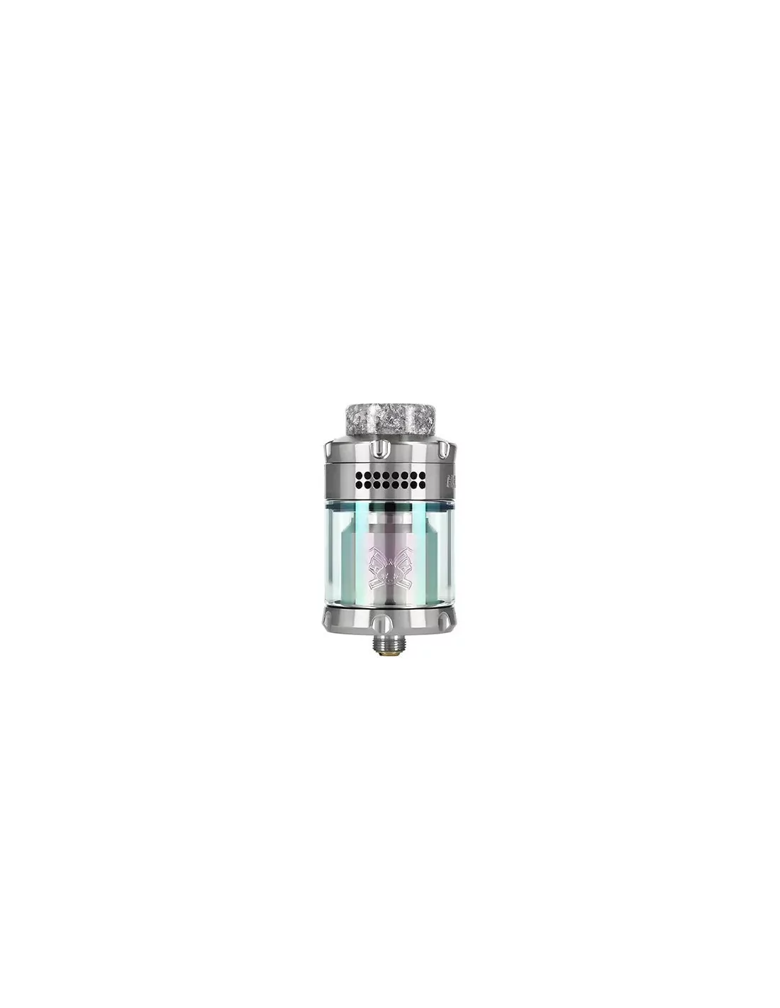 El diseño se actualiza con un nuevo pyrex de color y un logo rediseñado en la parte trasera del tanque, aportando un acabado más moderno y distintivo. Su plataforma de montaje sigue optimizada para configuraciones dual coil, permitiendo un montaje cómodo y rendimiento denso en sabor y vapor.