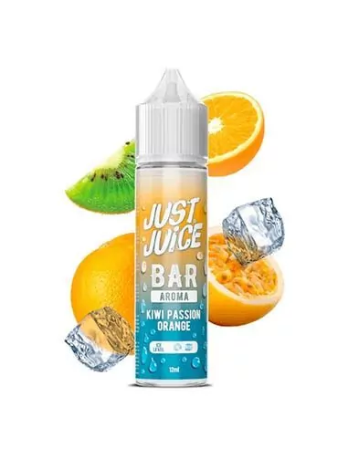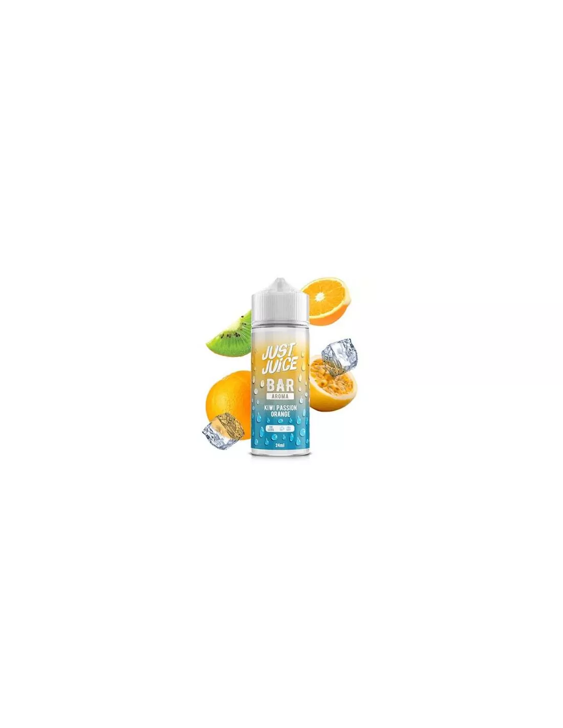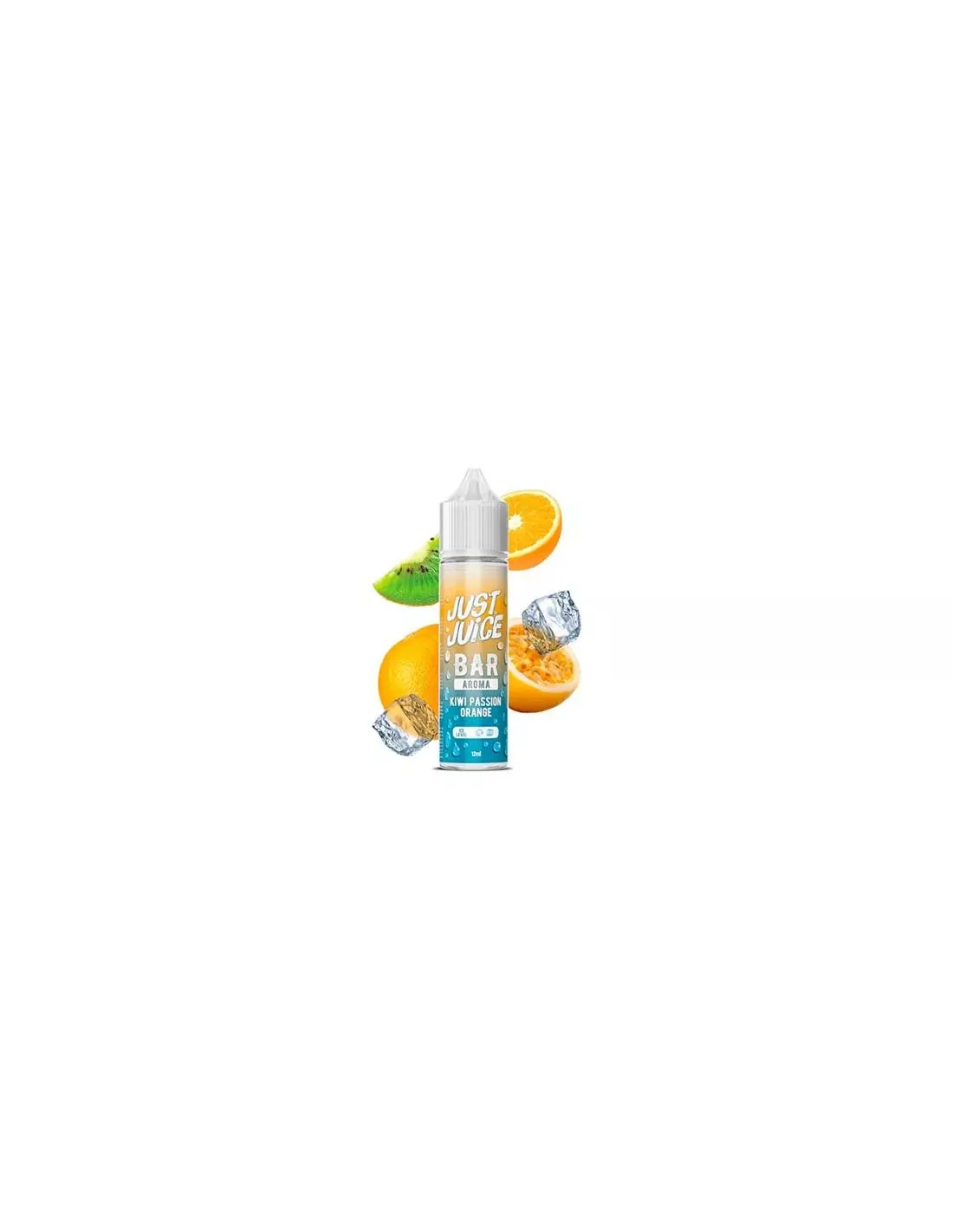 Kiwi Passion Fruit Orange Aroma Longfill Just Juice Bar, sabor a kiwi, maracuyá, naranja y hielo. Formatos 60ml y 120ml para mezcla personalizada.