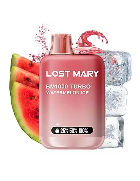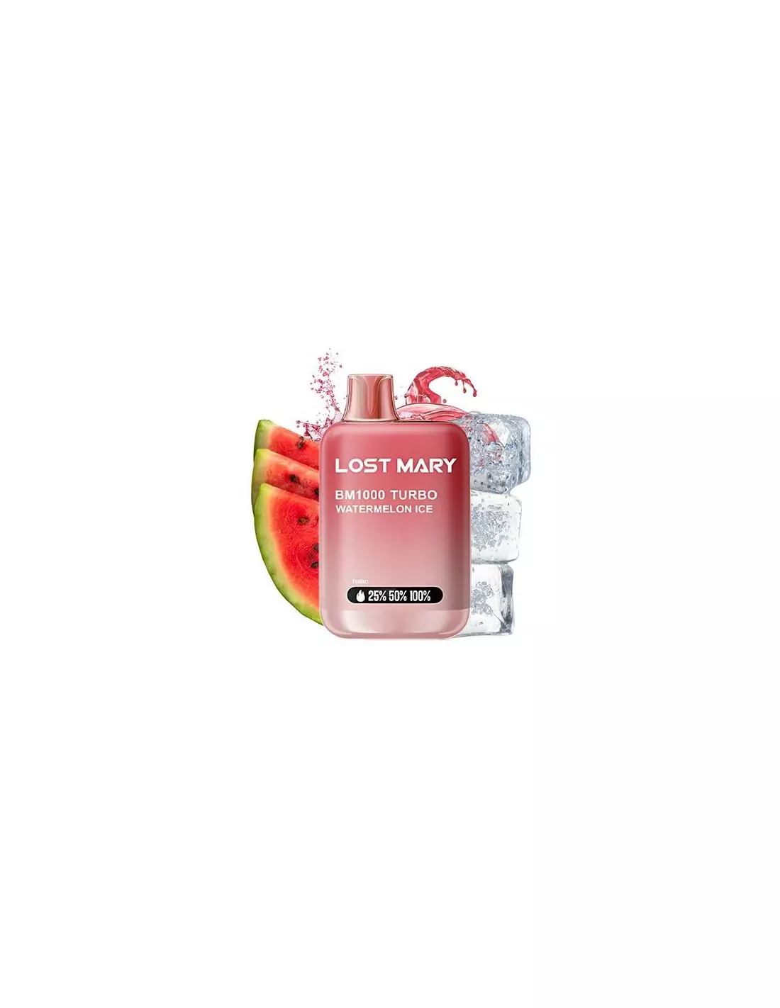 Lost Mary BM1000 TURBO Sandía Helada: 20 mg de nicotina, modo TURBO y pantalla inteligente. Sabor ICE refrescante en un dispositivo elegante y potente.