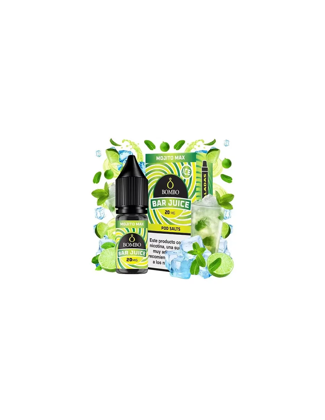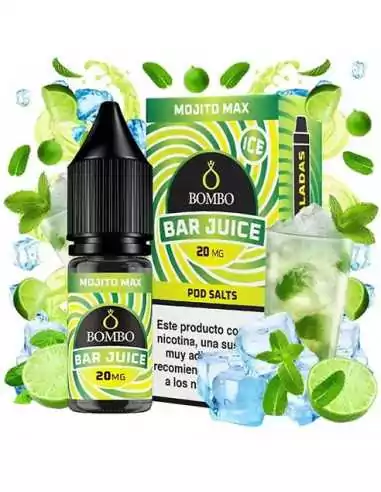 Mojito Max Ice 10ml Nic Salts by Bombo. Lima, menta y dulzor con efecto ICE. Sabor a cóctel caribeño intenso y refrescante. Base 50/50. Ideal para pods.