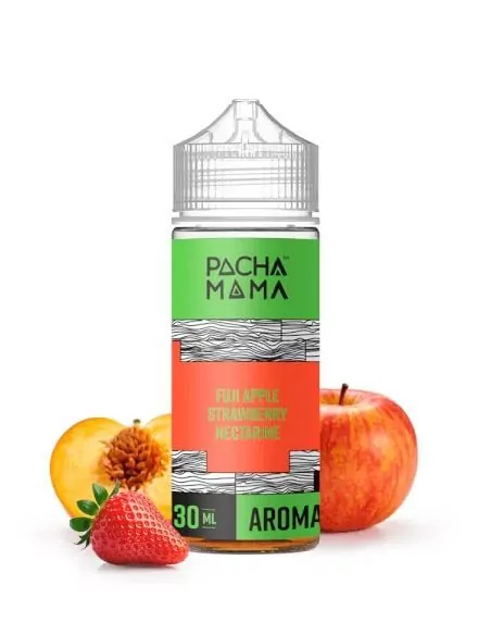 Aroma Fuji Apple Strawberry Nectarine Pachamama Longfill, sabor a manzana Fuji, fresa y nectarina. Formato 30ml de aroma en bote de 120ml. Sin nicotina.