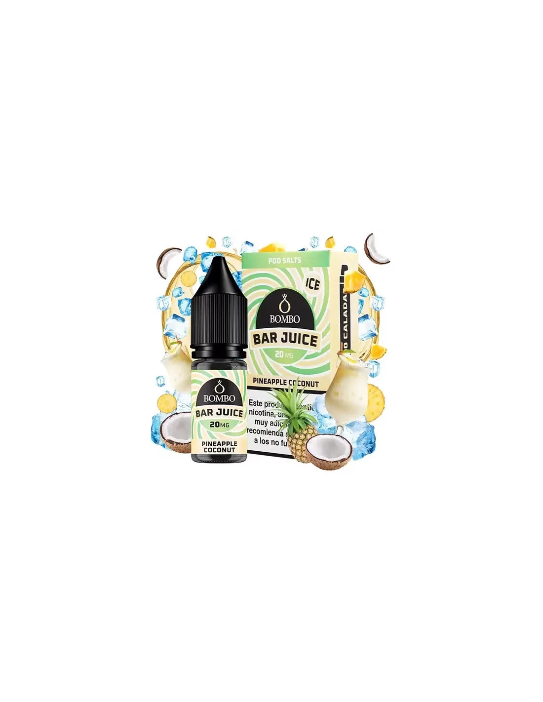 Pineapple Coconut Ice de Bar Juice Nic Salts by Bombo es una mezcla tropical irresistible que combina la piña jugosa y ligeramente ácida con la suavidad cremosa del coco, todo realzado con un refrescante efecto ICE que aporta una calada veraniega y equilibrada.