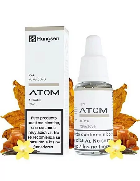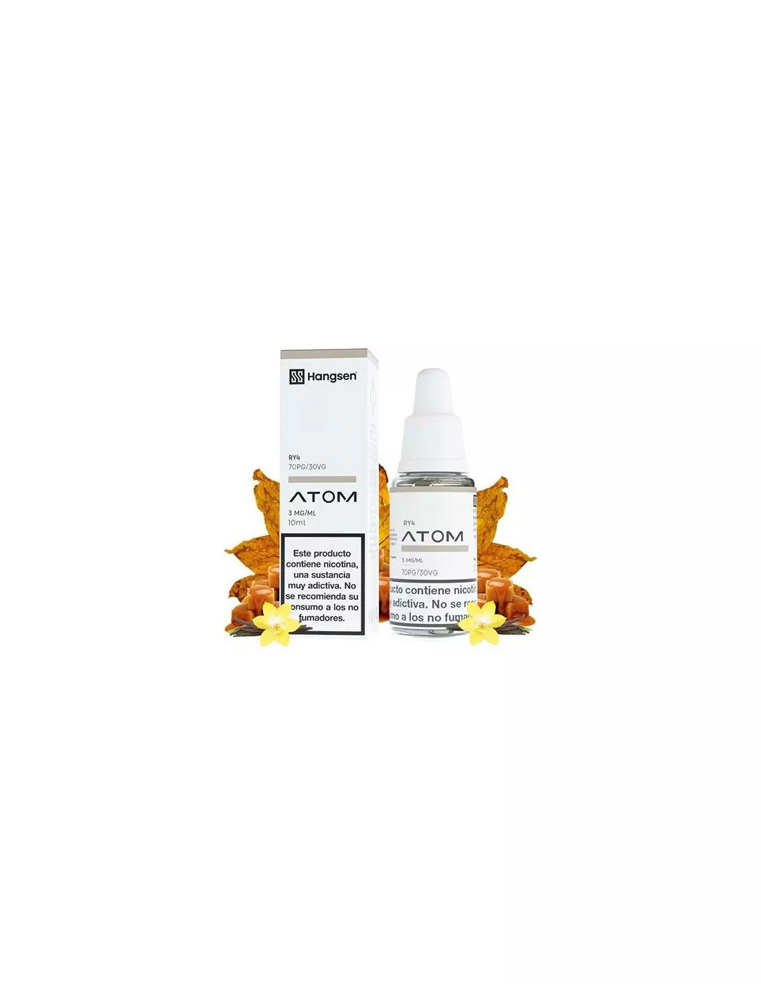Hangsen Atom RY4 10ml: e-líquido de tabaco suave con toques de vainilla y caramelo, disponible en varias nicotinas. Ideal para MTL diario.