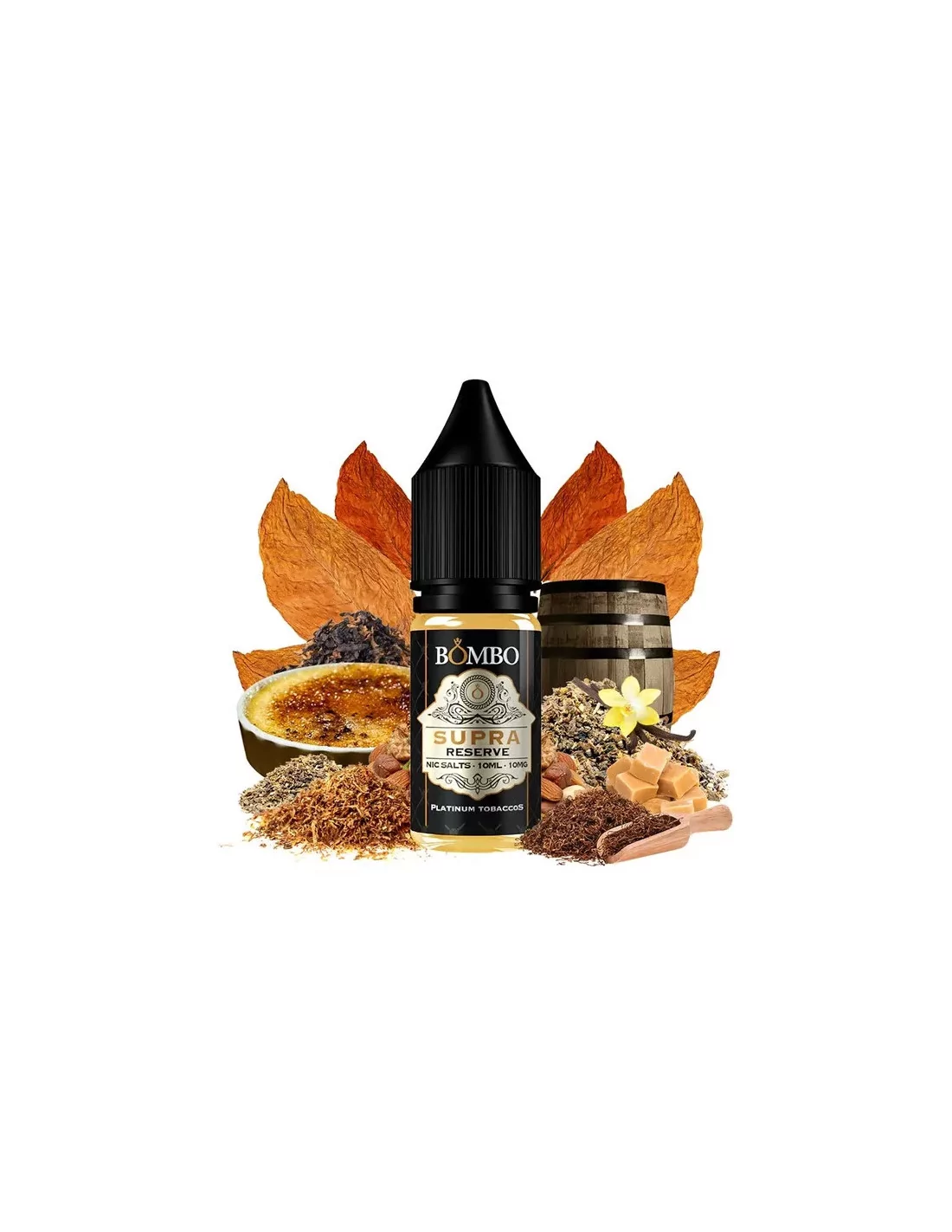Supra Reserve Nic Salts by Bombo 10ml – Tabaco dulce, caramelo y notas tostadas. Sales de nicotina 10/15/20mg con doble maceración. 50VG/50PG.