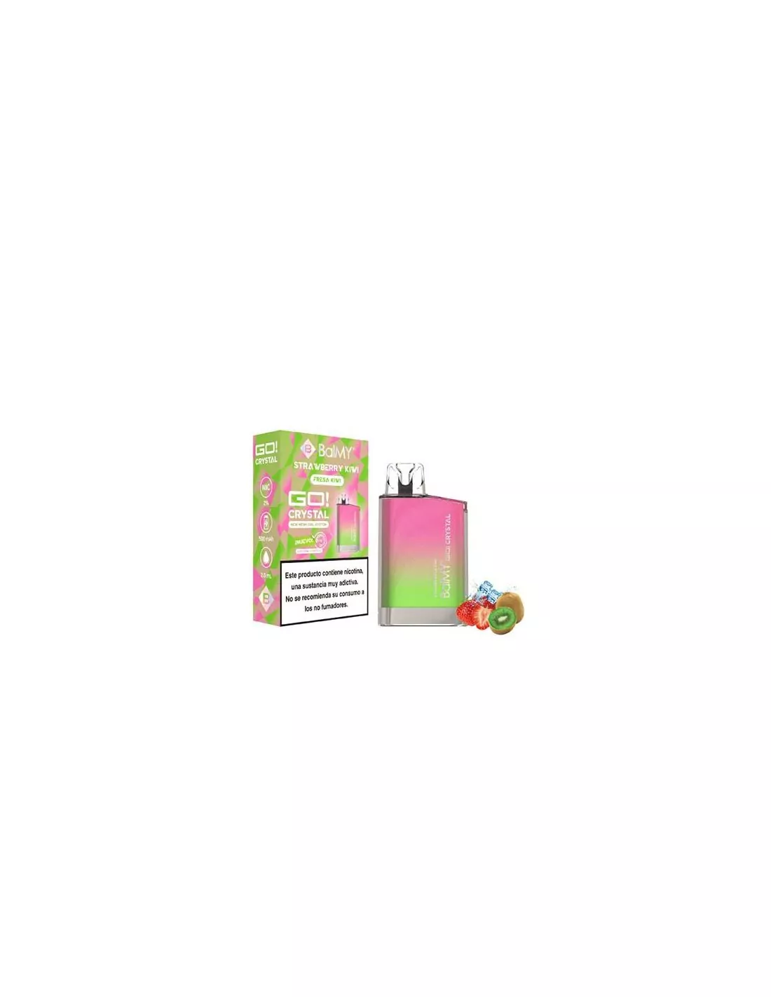 BalMY Go Crystal Fresa y Kiwi, vaper desechable con 20mg de sales de nicotina, sabor a fresa con kiwi y autonomía superior a 800 caladas.