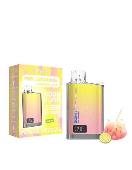 BalMY Power Crystal Pink Lemonade 0mg ofrece hasta 8000 caladas de sabor cítrico y refrescante, en un vaper elegante, práctico y sin nicotina.