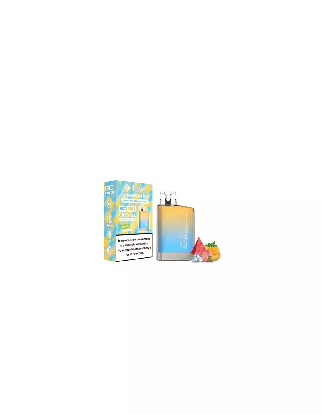 BalMY Go Crystal Sandía Melocotón y Mango, vaper desechable con 20mg de sales de nicotina, sabor frutal tropical y autonomía superior a 800 caladas.